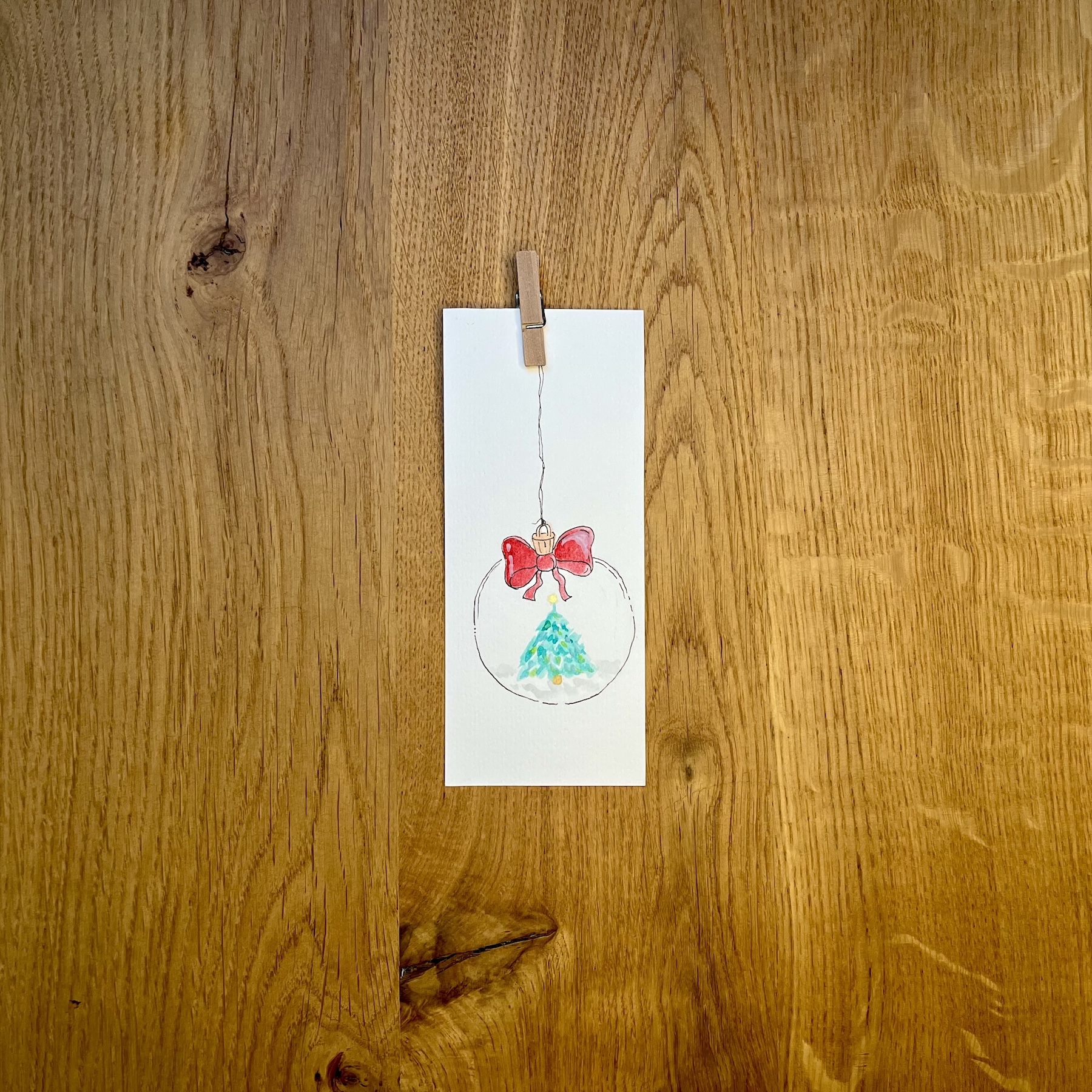 Biglietto di Natale artigianale dipinto ad acquerello, realizzato a mano su carta spessa. Perfetto per accompagnare un regalo con un tocco unico.